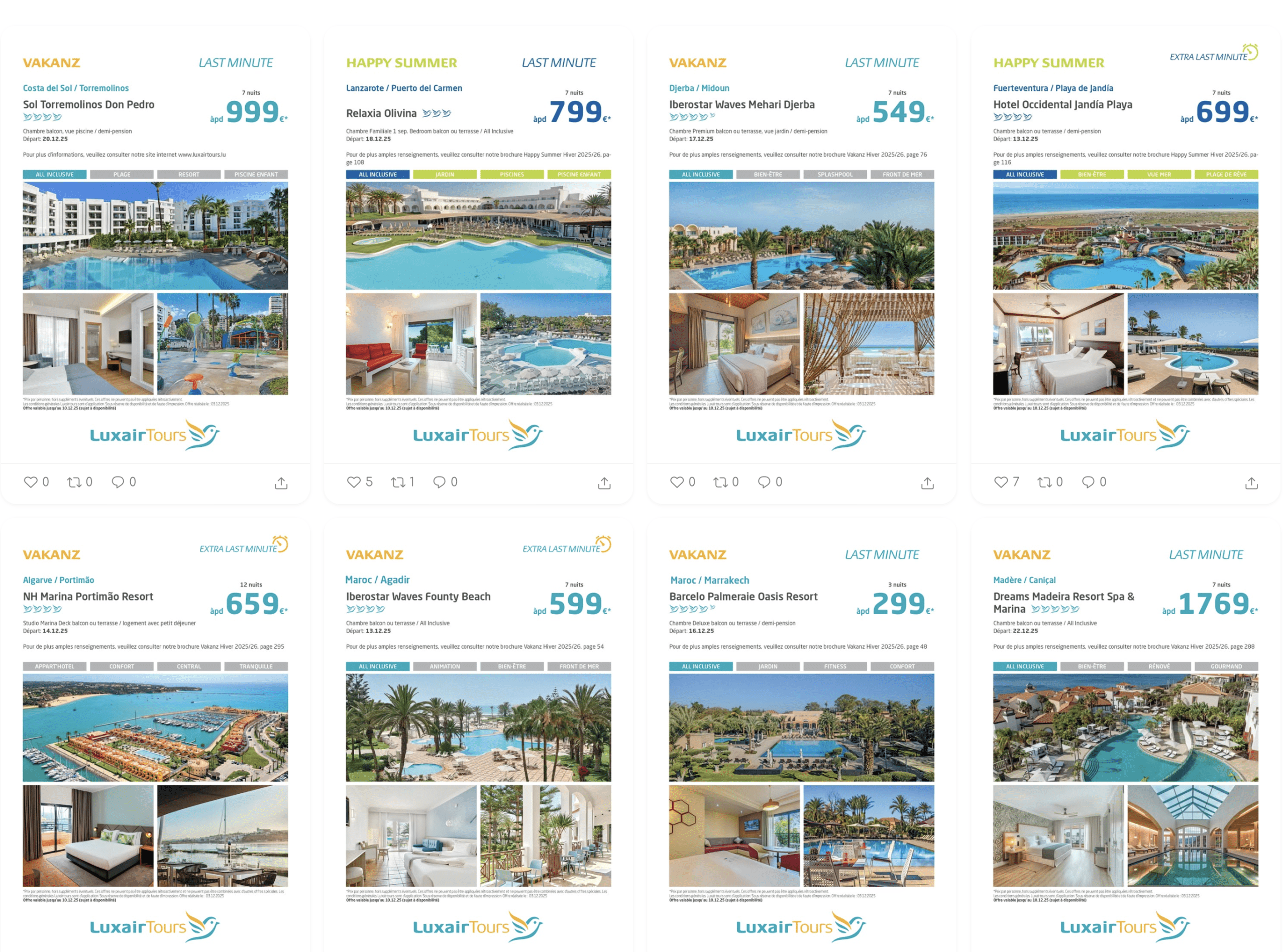 Sur le site internet vous trouverez une liste de suggestions et de destinations « dernières minutes » et d’opportunité régulièrement mises à jour.